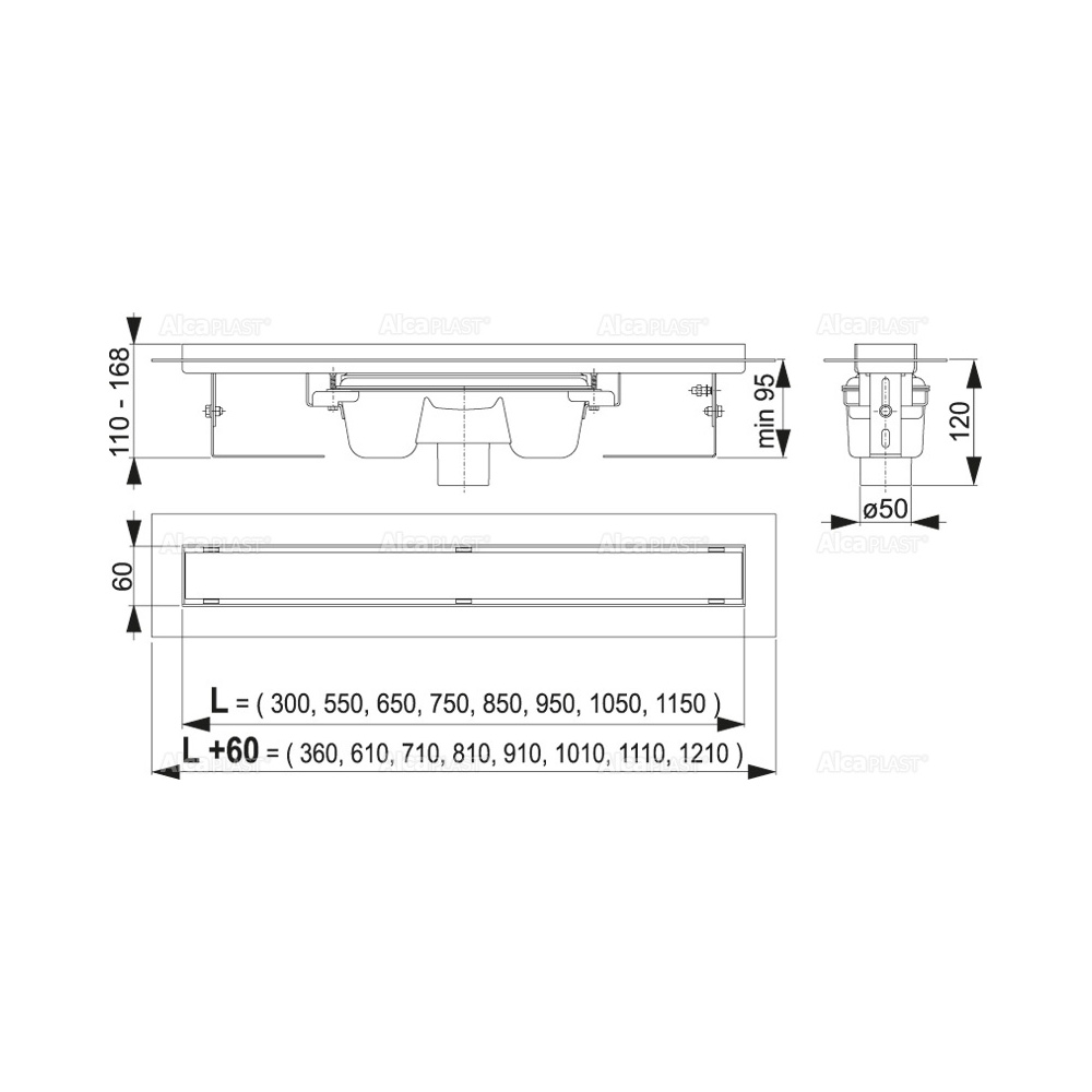 Высота монтажа от 95 мм