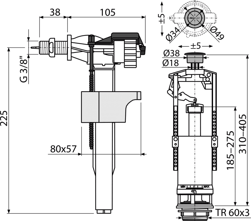 Поплавок для настройки объема спускаемой воды.