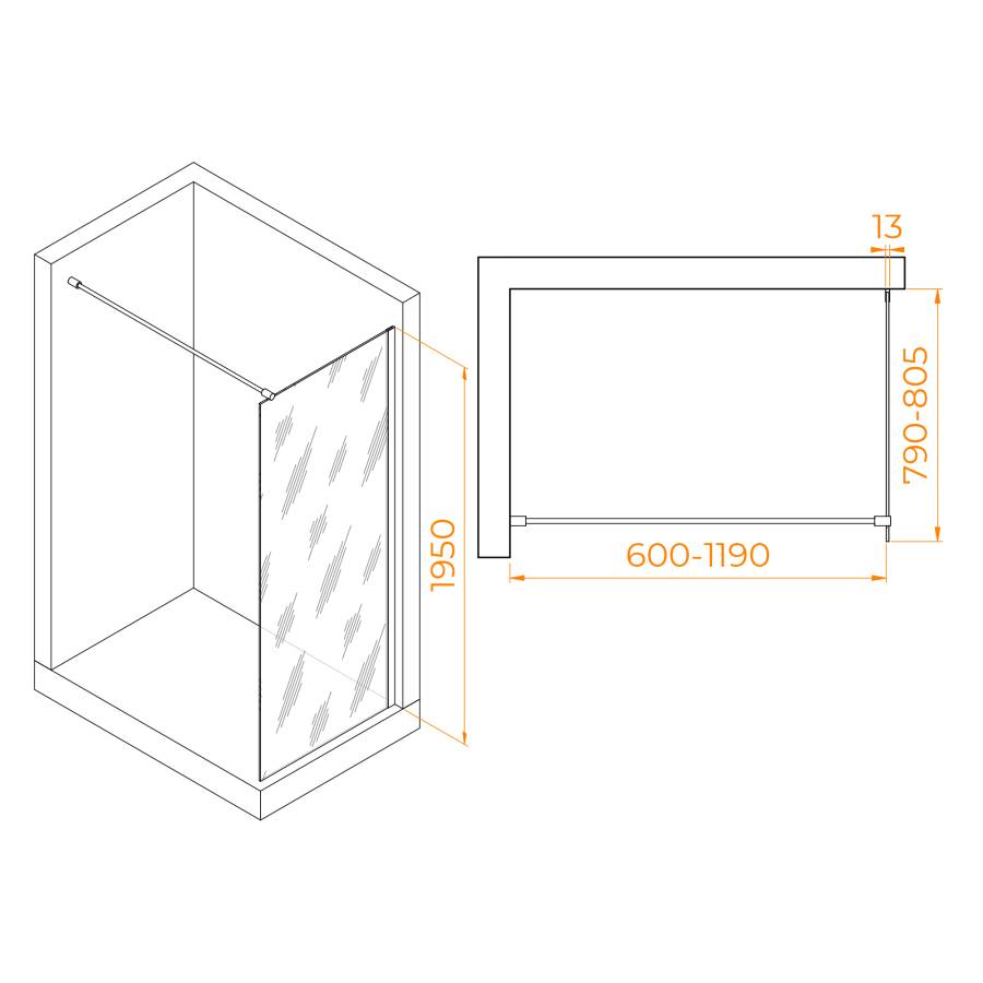 Регулируемый профиль позволяет настроить перегородку под ваше пространство и ваш вкус. Универсальная установка обеспечивает удобство и легкость установки, независимо от характеристик вашей ванной комнаты.