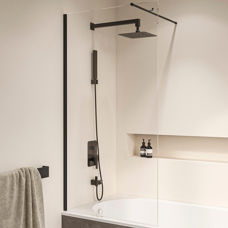 Цвет профиля шторки черный, что придает ей особенную изящность и элегантность. Этот цвет всегда в моде и отлично сочетается с любым цветовым решением ванной комнаты.