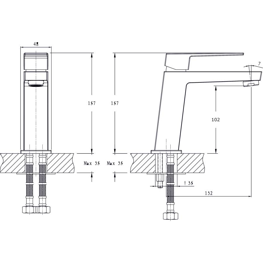 В смеситель установлен картридж D-25 с керамическими пластинами. Высота смесителя 157 мм. Излив литой неповоротный, высота излива до аэратора 132 мм. Аэратор изготовлен из пластика с нержавеющим корпусом, угол наклона аэратора- 7 гр.