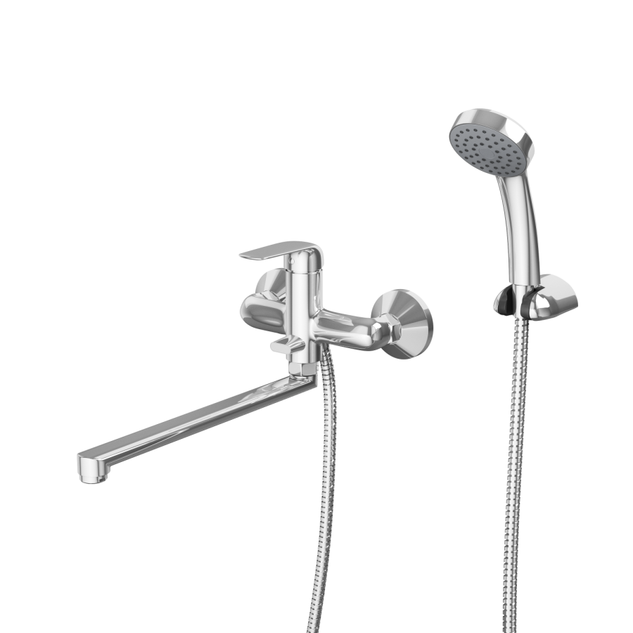 Смеситель для ванны и душа с душевой лейкой и шлангом, держатель душевой лейки, с дополнительным аэратором, фум-лента, индивидуальный пакет, паспорт, гарантийный талон. |