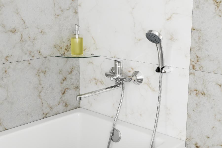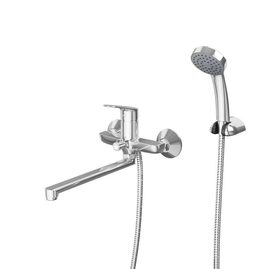 Смеситель для ванны и душа с душевой лейкой и шлангом, держатель душевой лейки, с дополнительным аэратором, фум-лента, индивидуальный пакет, паспорт, гарантийный талон. |