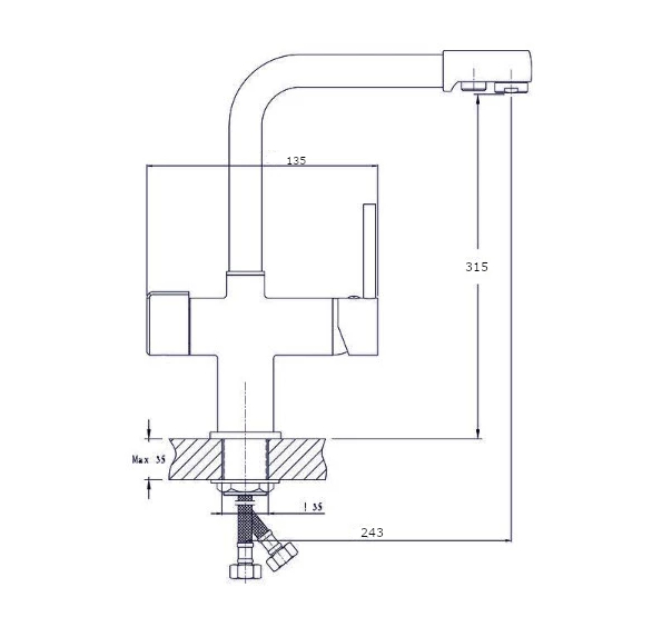 В смеситель установлен картридж D-35 с керамическими пластинами. Излив поворотный, 240 мм. Высота излива до аэратора 315 мм. Аэратор изготовлен из пластика с нержавеющим корпусом.