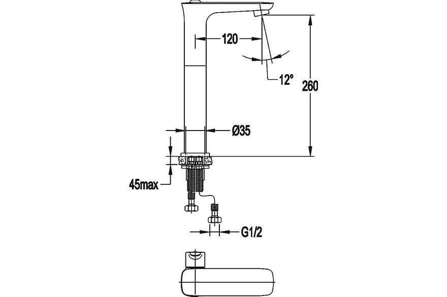 Высота излива см./мм.