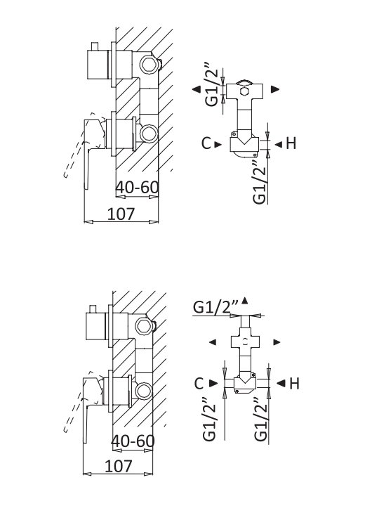 Скрытая монтажная часть, переключатель потоков |