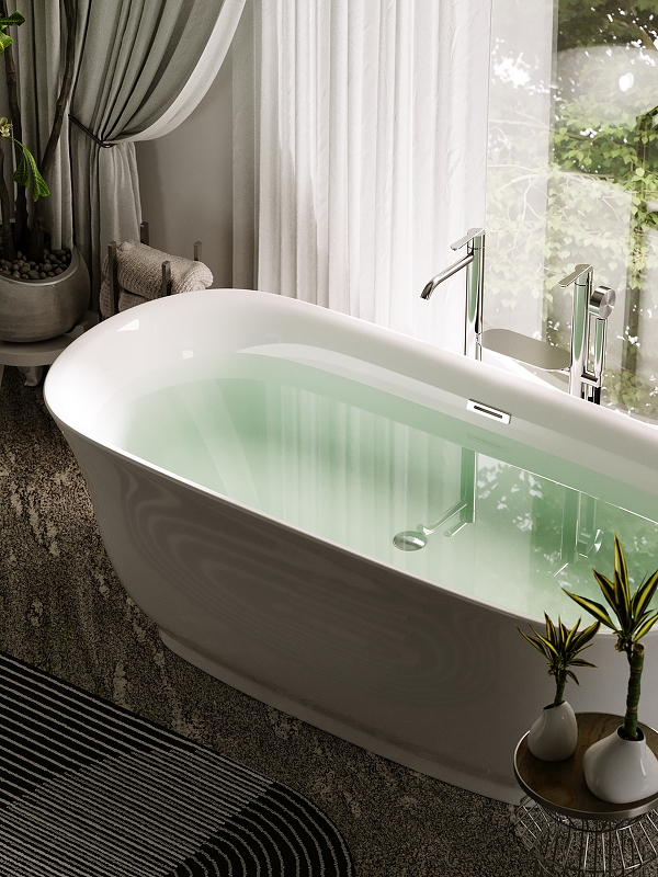 Ванна с экраном, алюминиевая рама, слив-перелив интегрированный, донный клапан "Click-Clack", сифон |