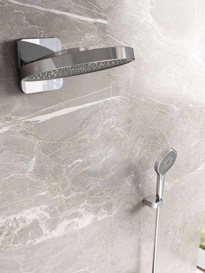 Верхний душ, полка с изливом и держателем ручного душа, ручной душ, смеситель со встраиваемой частью |