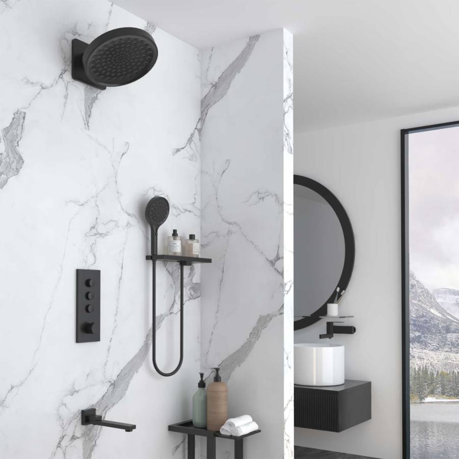 Верхний душ, полка с держателем ручного душа, ручной душ, встраиваемый смеситель,излив |