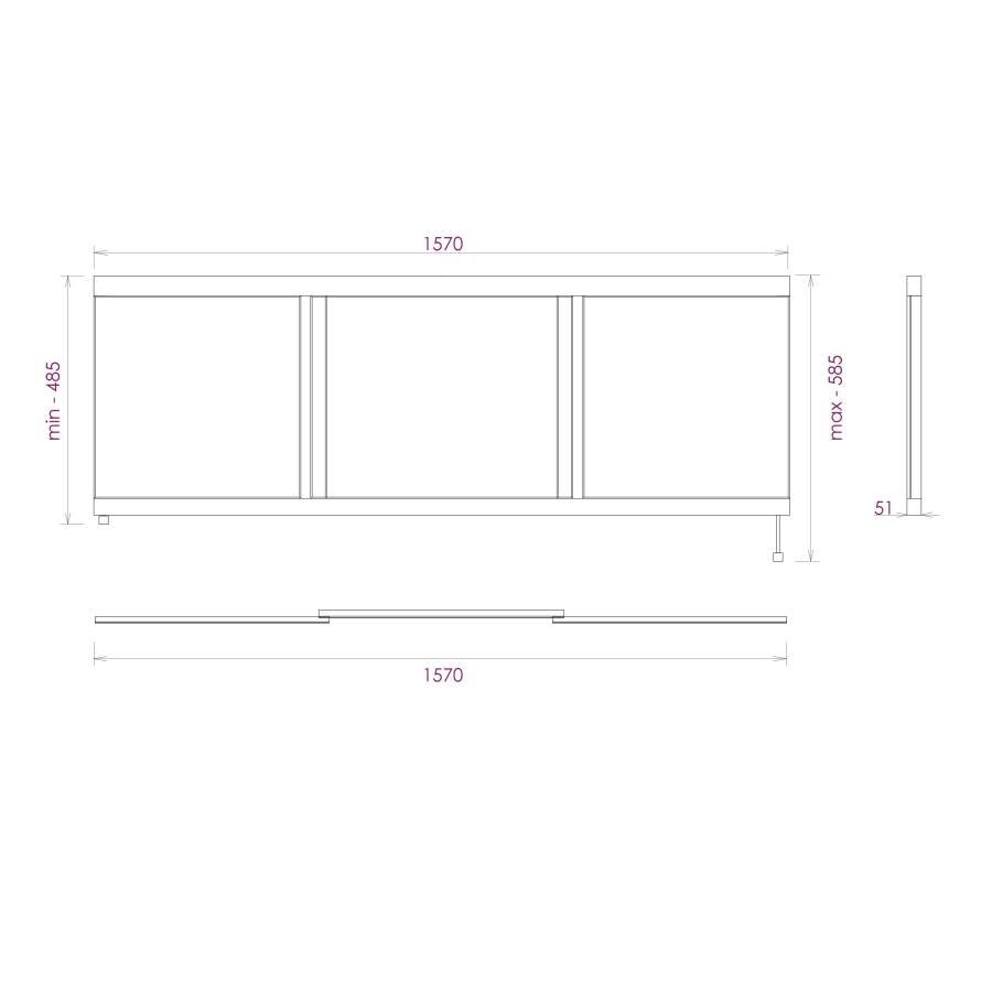 Ножки позволяют регулировать экран по высоте от 52 до 60 см, благодаря этому экран является универсальным и впишется в интерьер любой ванной комнаты.