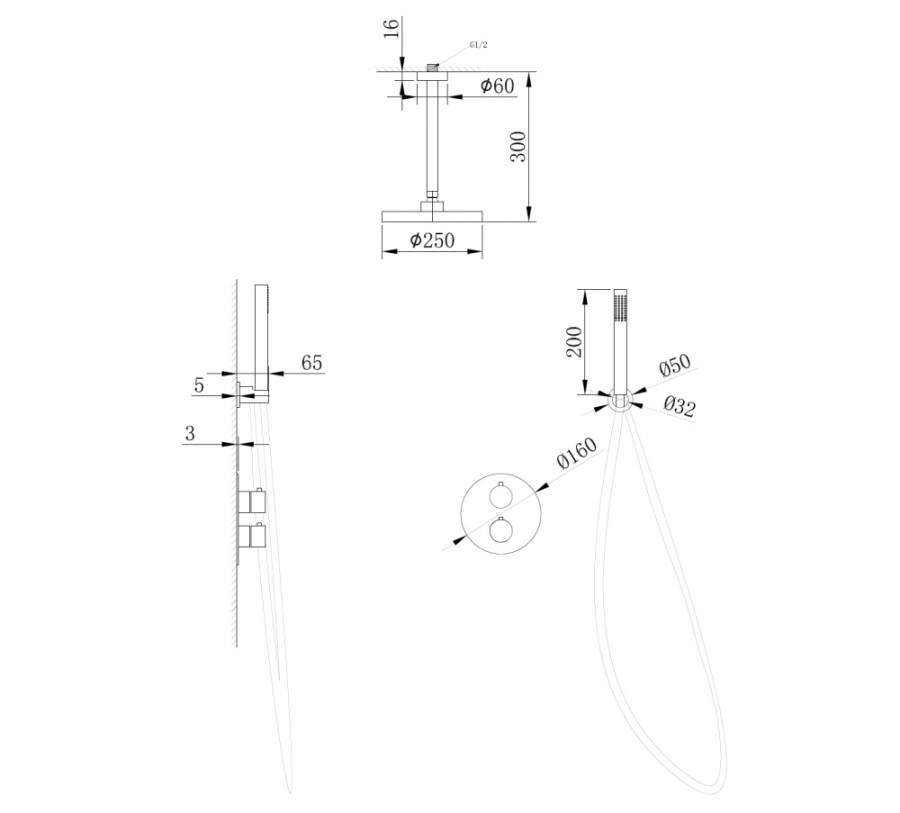 Размер верхнего душа мм.