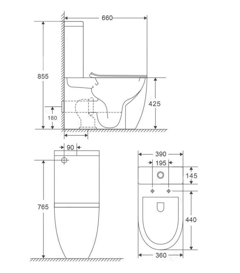 Унитаз керамический безободковый; бачок смывной керамический с нижним подводом воды; двухуровневый спускной механизм; сиденье для унитаза из дюропласта легкосъемное с функцией плавного закрывания; монтажный комплект; инструкция/гарантийный талон |