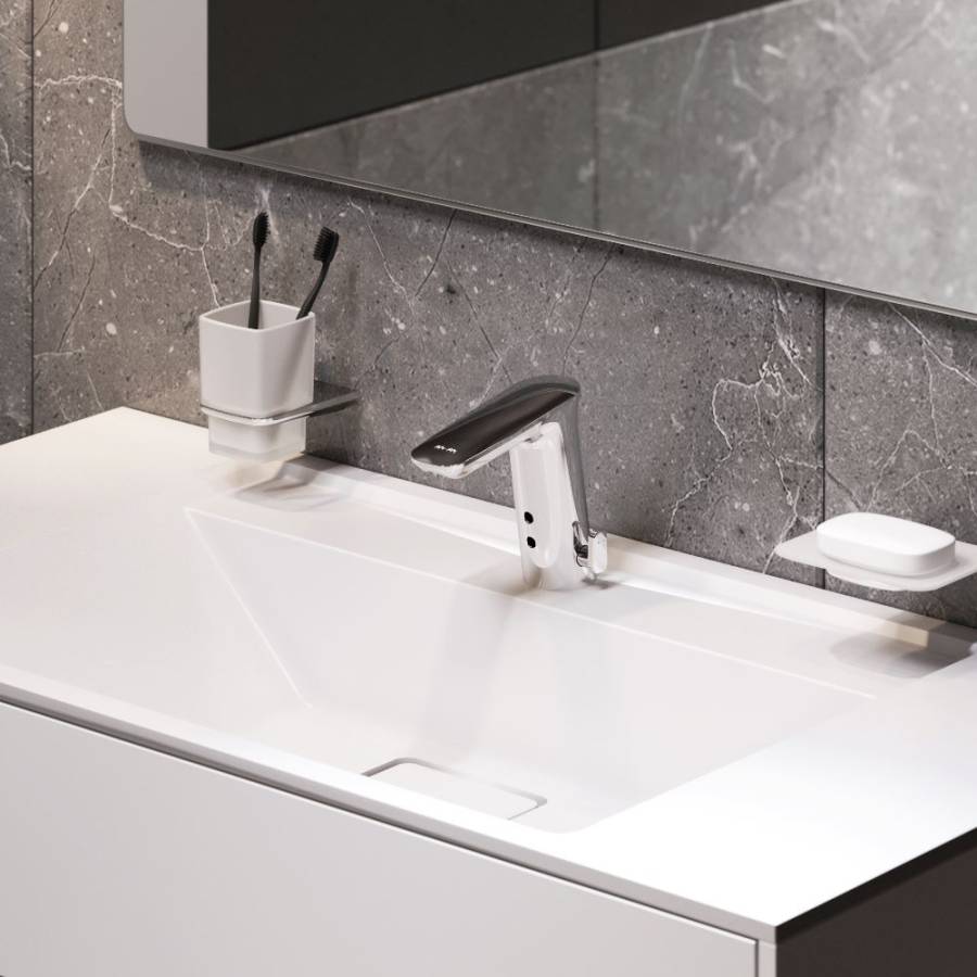 Абсолютная гигиеничность: настройте температуру воды и при необходимости дистанцию срабатывания сенсора чтобы потом пользоваться смесителем без лишних прикосновений. _x000D_