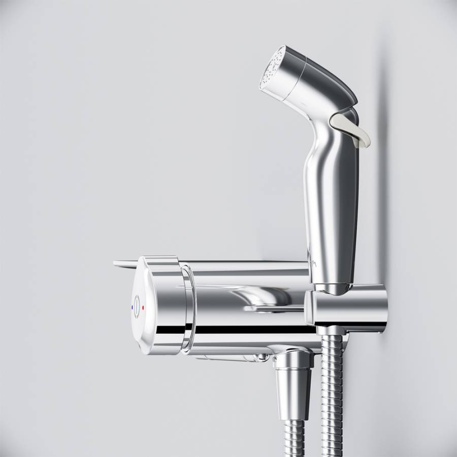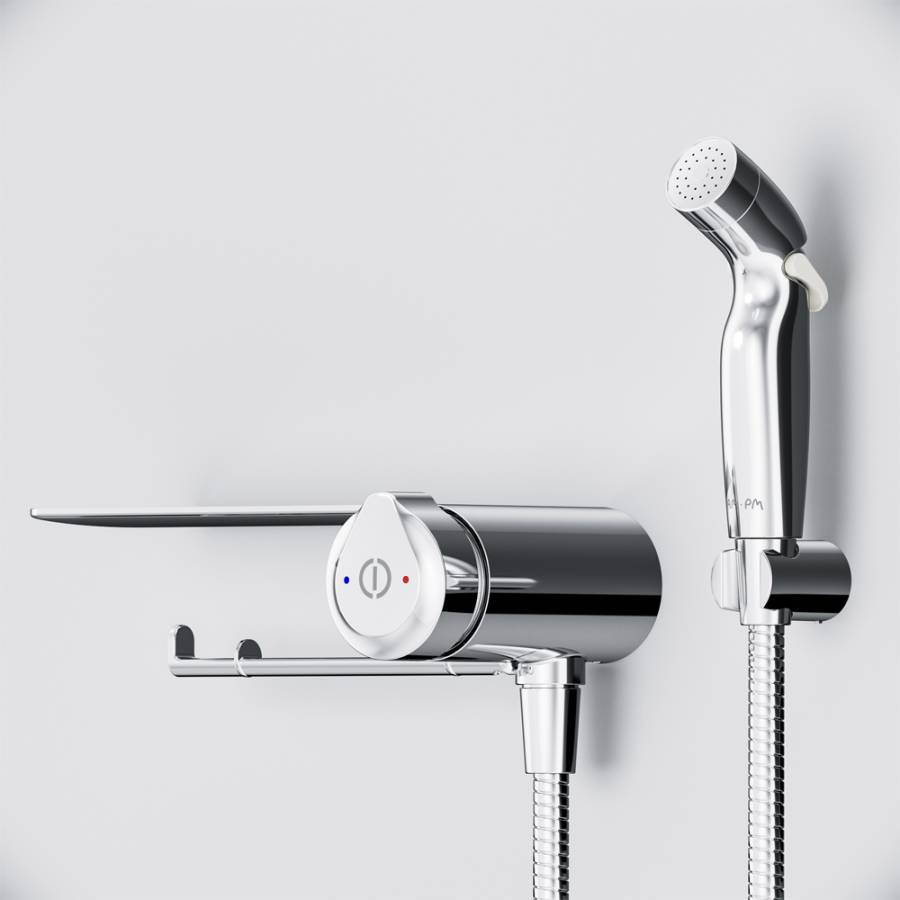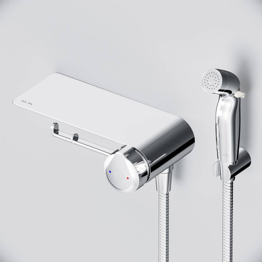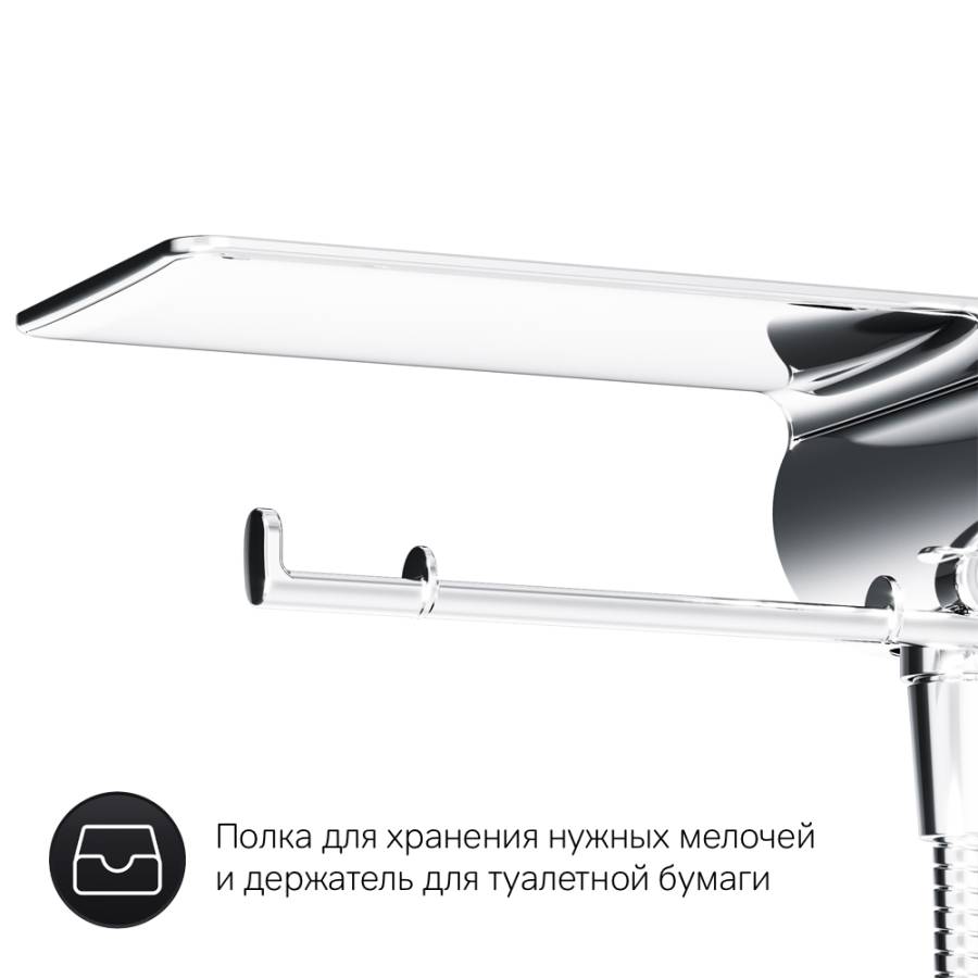Максимально простое управление температурой воды для тех кто не хочет ничего настраивать. Весь продукт представляет собой удобную полочку на которой можно разместить все что необходимо вам под рукой. На интегрированном держателе можно размещать туалетную бумагу а на крючке - полотенце. ""