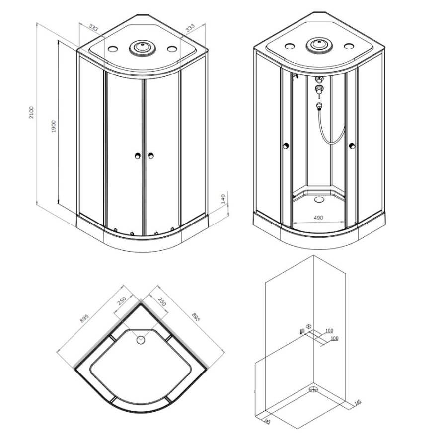 Одинарные ролики обеспечивают легкое и бесшумное открывание. Кабина оснащена 5-режимным ручным душем стильным смесителем и компактной полкой на которой разместится все необходимое. Герметичная конструкция защищает помещение от брызг воды._x000D_