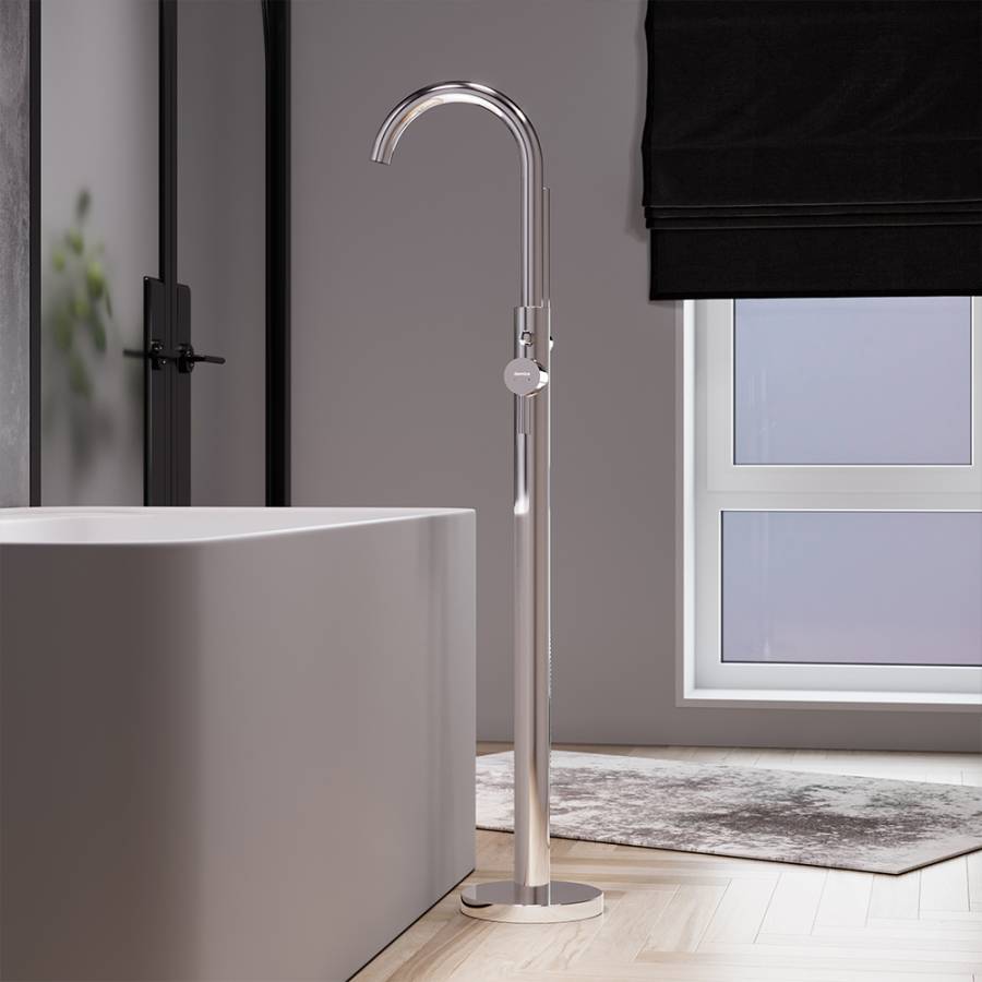 Впервые в линейке продуктов Damixa - отдельностоящий смеситель напольного монтажа. Это не только яркий акцент но и идеальное решение для отдельностоящей ванны. А ручка и лейка в трендовой форме стика привнесут особую эстетику в интерьер ванной комнаты._x000D_
