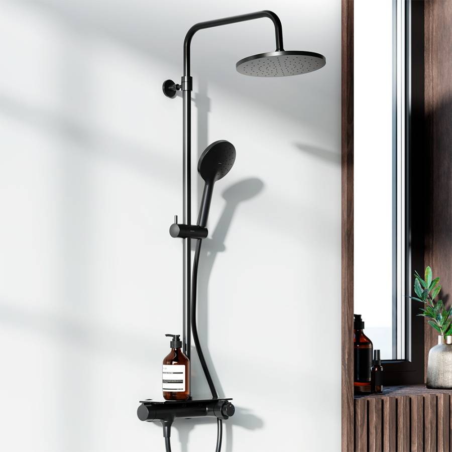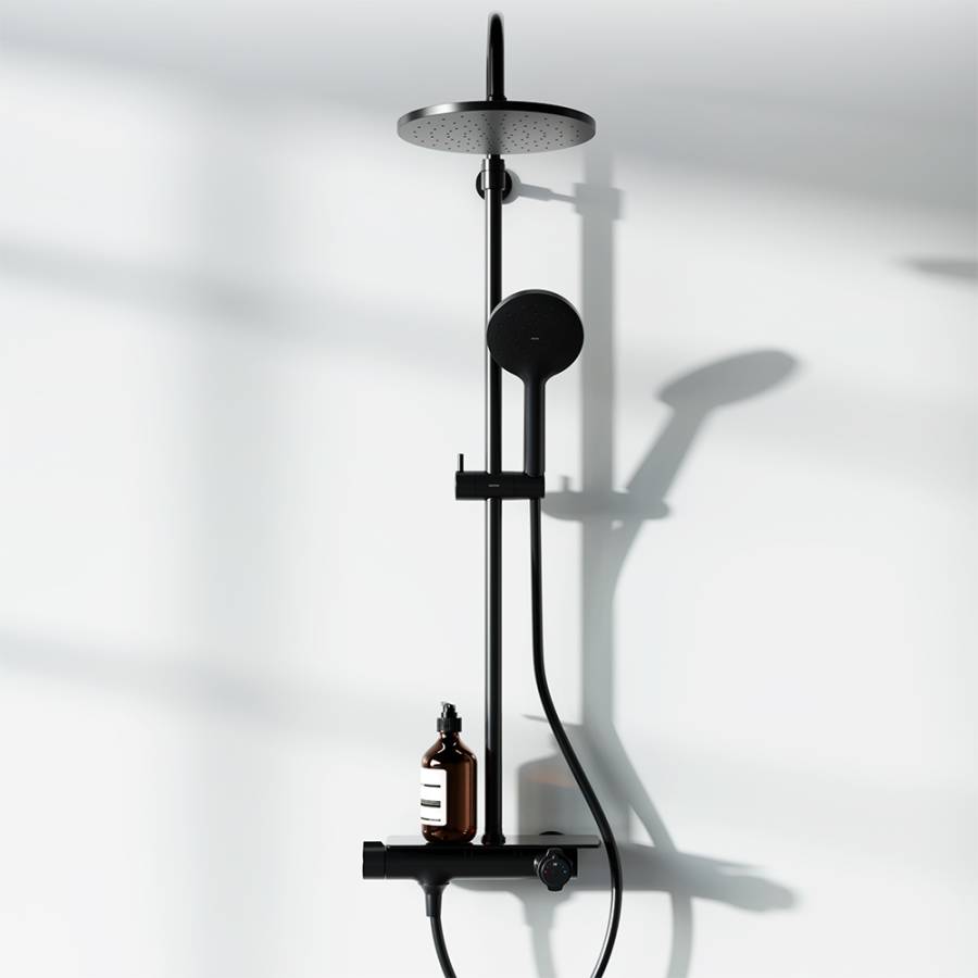 Инновационное PVD-покрытие гарантирует чрезвычайную прочность душевой системы. Матово-черная поверхность не выцветает с годами и устойчива к механическим повреждениям загрязнениям и отпечаткам пальцев. ""