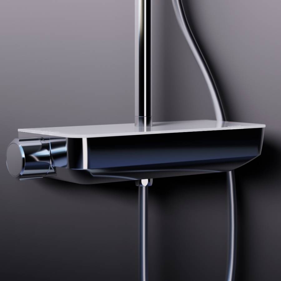 Непревзойдённый комфорт и удобство: смеситель выполнен в виде компактной но вместительной полочки из закаленного стекла где вы можете хранить все необходимые вещи._x000D_