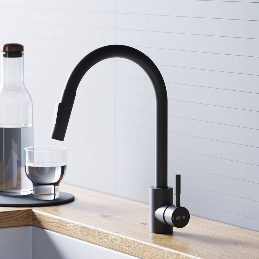 Утонченный элегантный дизайн сохранит свою актуальность на долгие годы и останется украшением на вашей кухне. Матовое покрытие в цвете Черный - никаких разводов и следов капель безупречный внешний вид смесителя всегда. Удобная эргономичная ручка-стик обеспечивает легкое управление напором воды в одно касание._x000D_