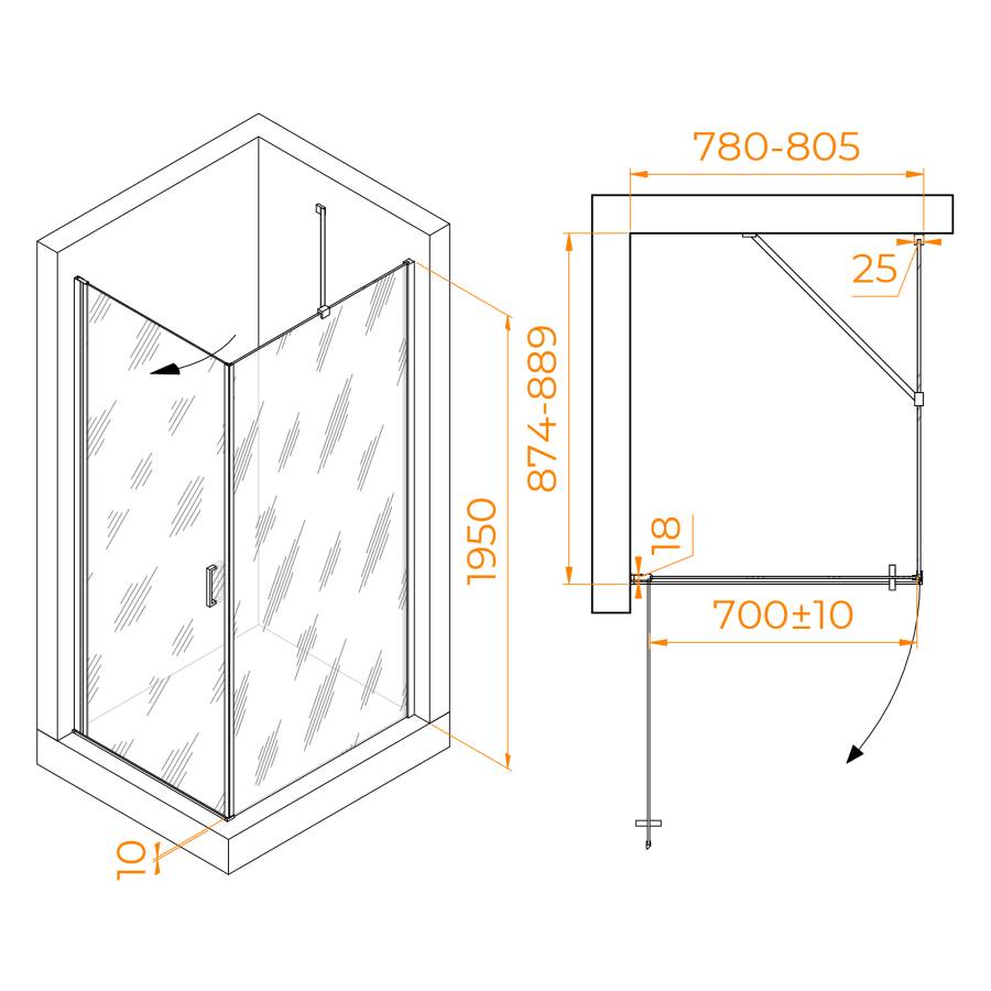 Душевой уголок RGW LE-034 имеет покрытие стекла, которое называется анти капля Easy Clean. Он защищает стекло от налета воды и других загрязнений, для простого и быстрого ухода, после использования только нужно протереть поверхность специальной салфеткой. Для настройки душевого уголка под свои потребности можно использовать регулируемый профиль.