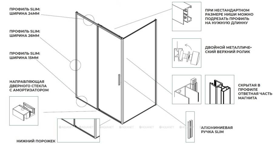 Пристенный П-Образный профиль. Возможна корректировка монтажного размера путем обрезки профиля.