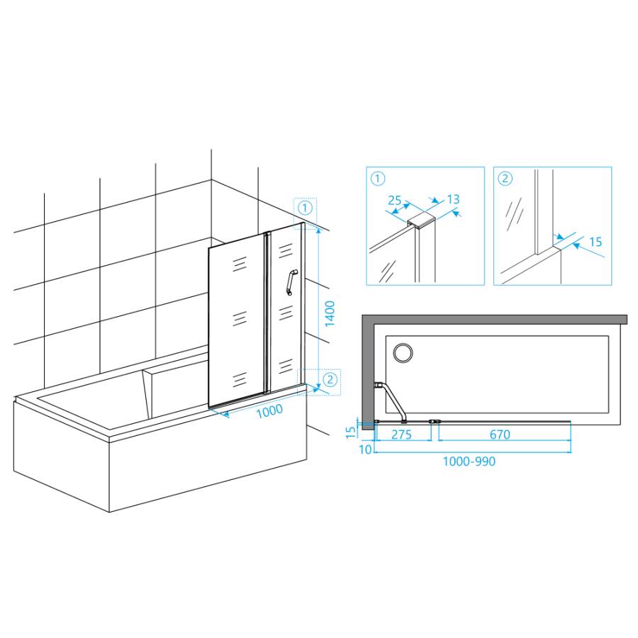 Одна из главных особенностей этого товара - толщина стекла, которое составляет 6 мм. Это гарантирует прочность и долговечность конструкции, а также безопасность ее использования. Прозрачное стекло создает ощущение воздушности и пространства в ванной комнате.