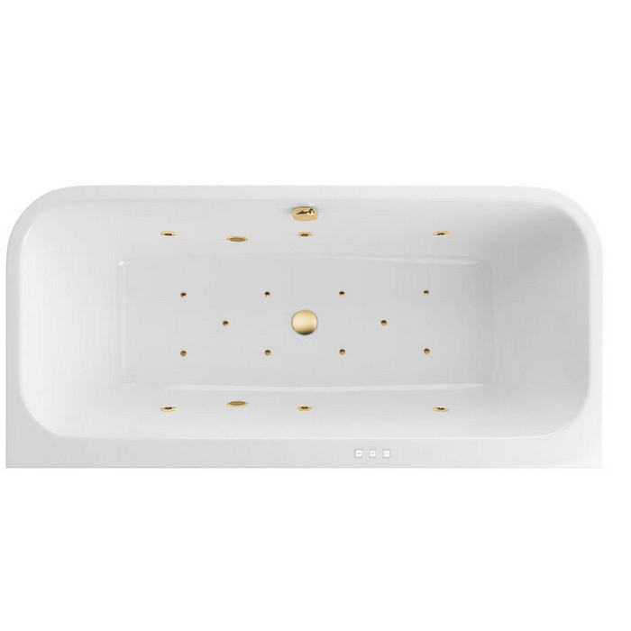 Комплект поставки включает в себя: - Ванна на каркасе, со сливом-переливом; - Гидромассажная система (6 форсунок MIDI-JET) с функцией "Пульсирующий режим"; - Аэромассажная система (10 форсунок AERO-JET) с функцией регулировки интенсивности массажа; - Электронное управление на 3 функции с датчиком уровня воды (защита от сухого пуска); - Хромотерапия с функцией "Стоп" (7 режимов работы). |