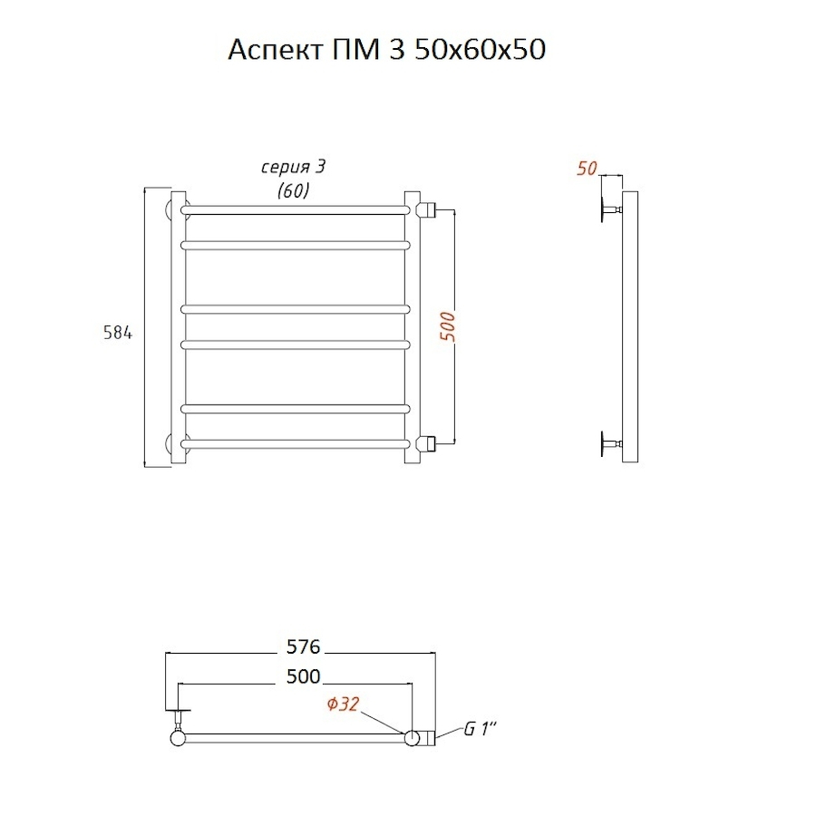 Полотенцесушитель; Комплект для бокового подключения; Телескопический держатель (2 шт.); Наружная резьба на 1 |