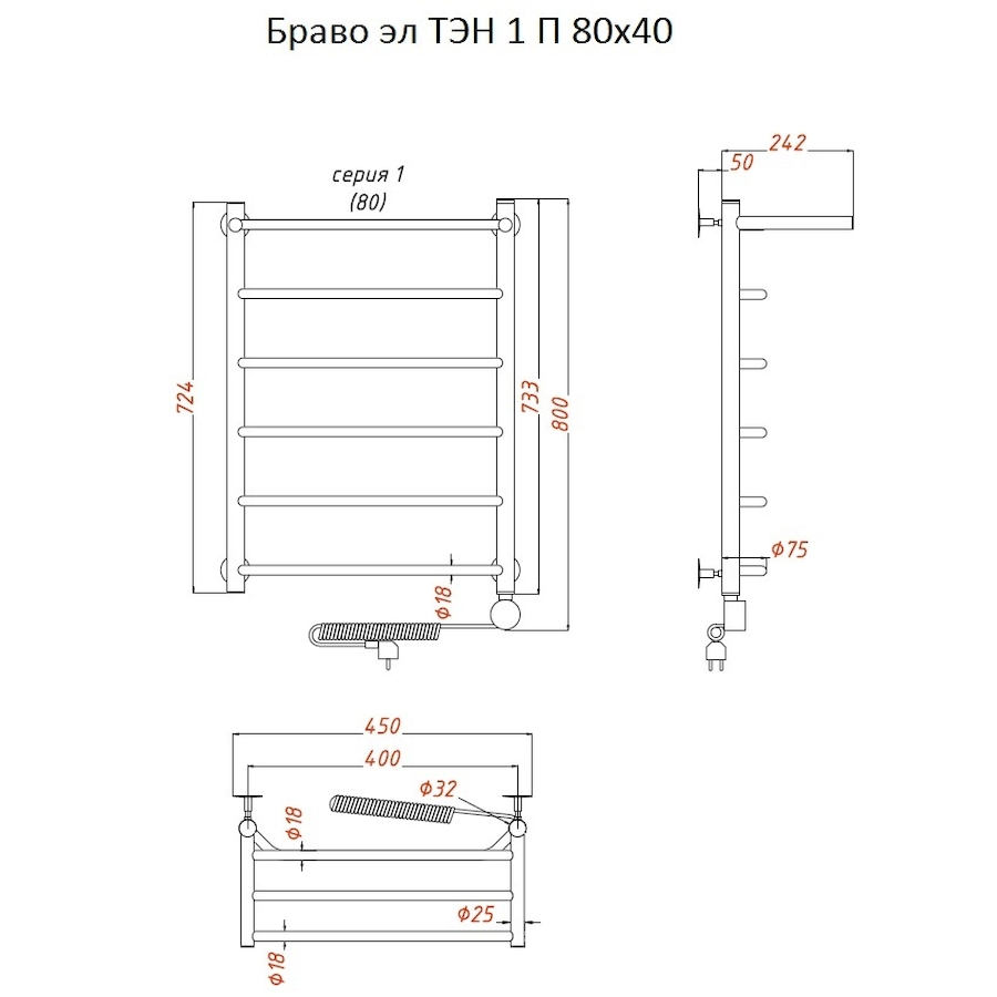 ТЭН 300 Вт, Бытовой антифриз, Заглушка с воздухоотводчиком |