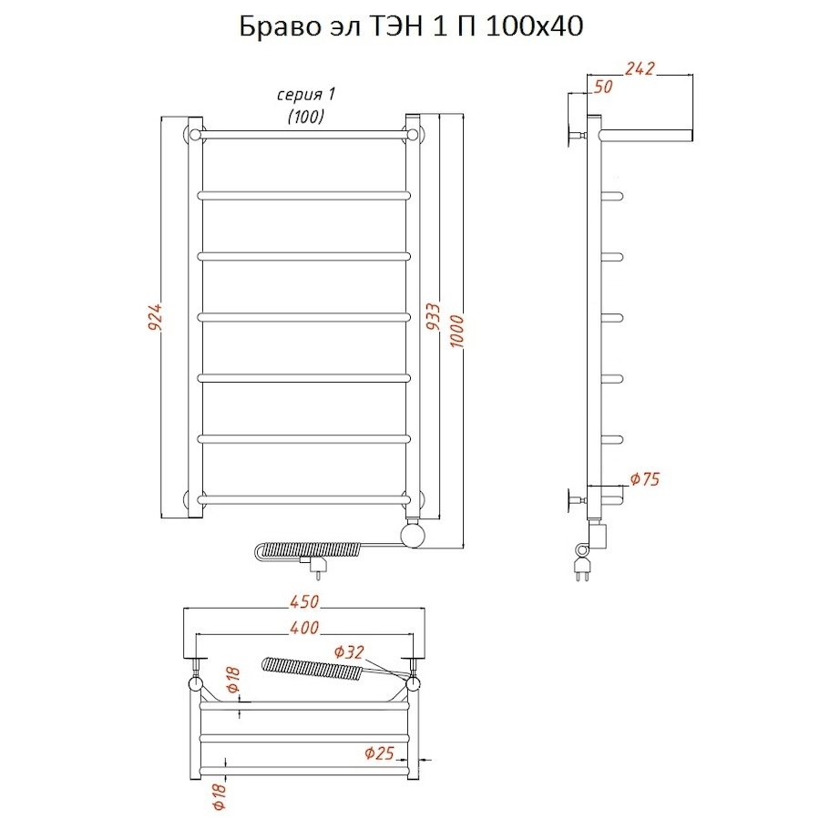 ТЭН 300 Вт, Бытовой антифриз, Заглушка с воздухоотводчиком |