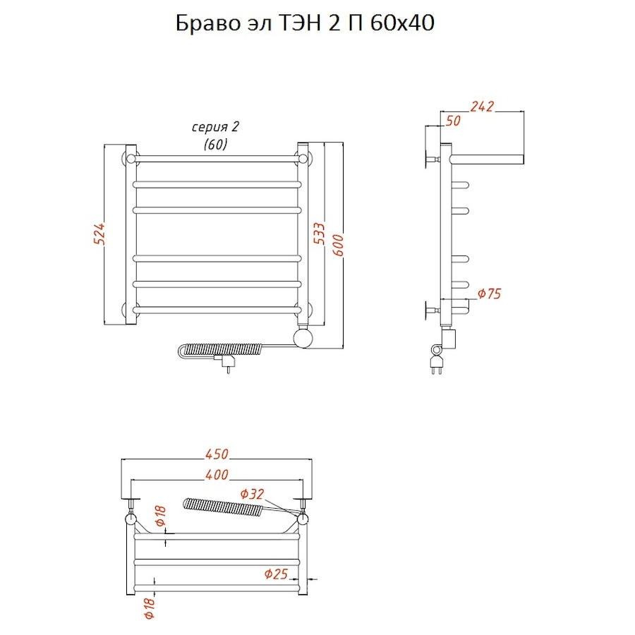 Электропровод с вилкой; Направление подключения: Левое, Правое |