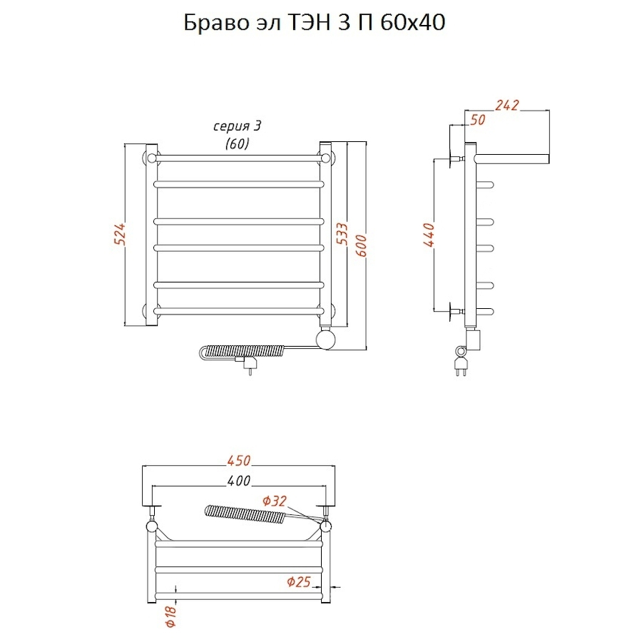ТЭН 300 Вт, Бытовой антифриз, Заглушка с воздухоотводчиком |