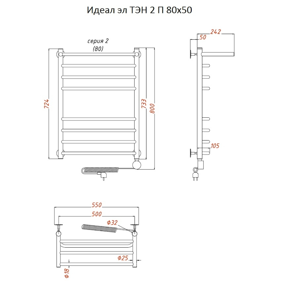 Электропровод с вилкой; Направление подключения: Левое, Правое |