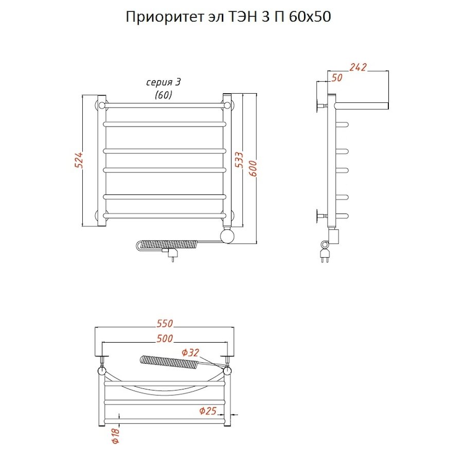 ТЭН 300 Вт, Бытовой антифриз, Заглушка с воздухоотводчиком |