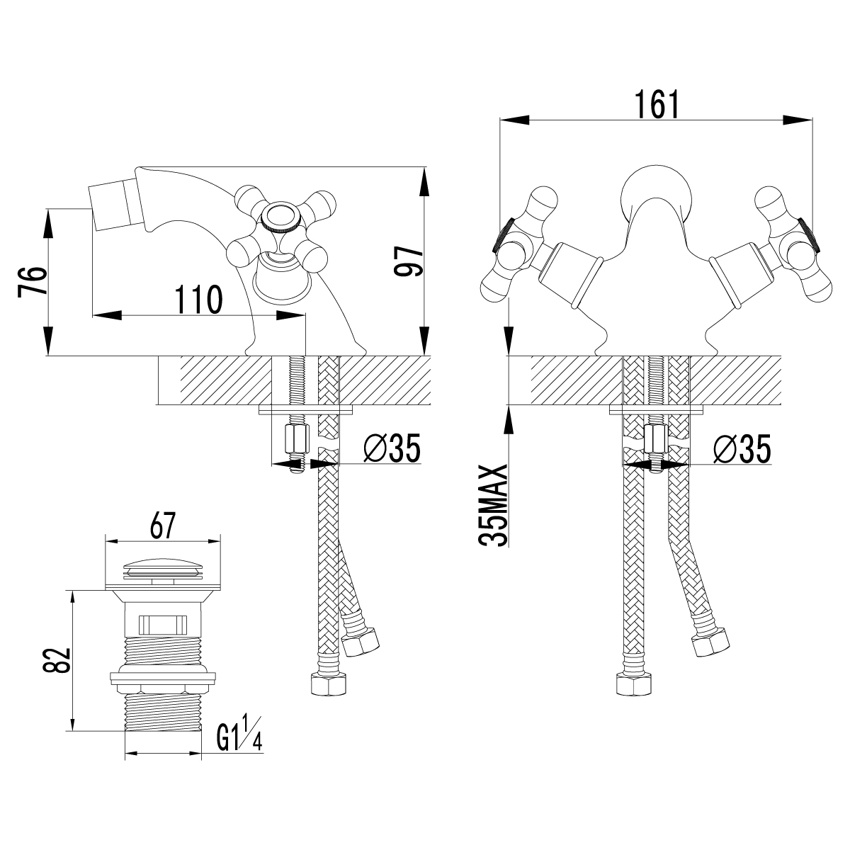 Смеситель - 1 шт; Донный клапан - 1 шт; Комплект подводки - 1 шт |