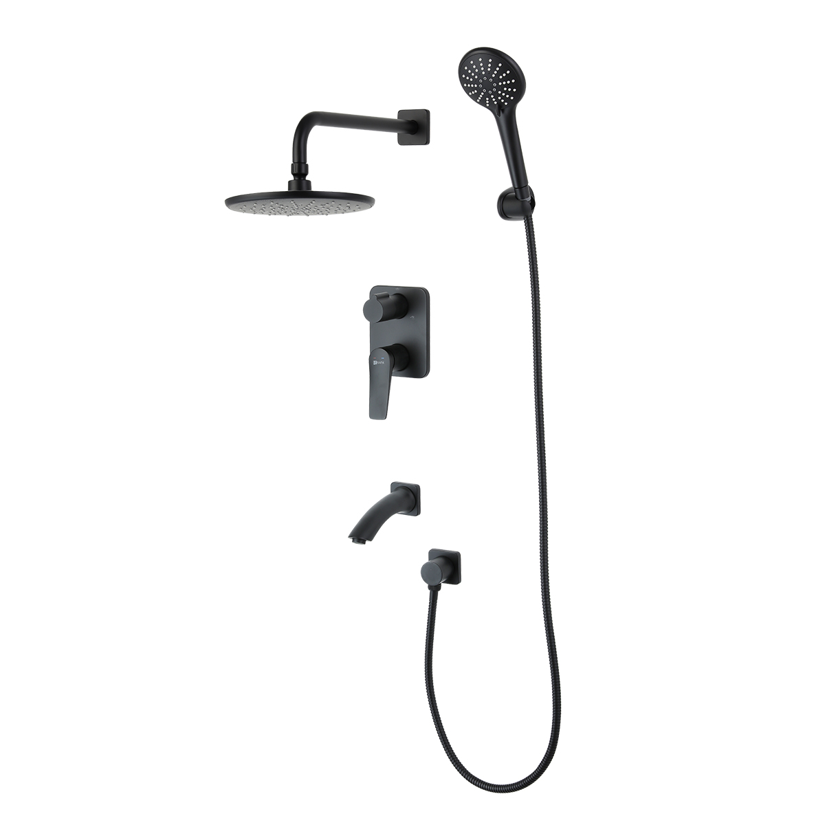 Встраиваемый наполнитель для ванны с аэратором Neoperl® Perlator®; Керамический картридж Sedal®35 мм; Трехпозиционный картриджный переключатель (угол поворота - 360⁰); Верхняя поворотная душевая лейка «Тропический дождь» Ø226 мм; Держатель верхней душевой лейки 346 мм; 3-функциональная лейка Ø110х243 мм; Настенное поворотное крепление для лейки; Душевой шланг 2 м; Подключение для душевого шланга; Металлическая рукоятка; |