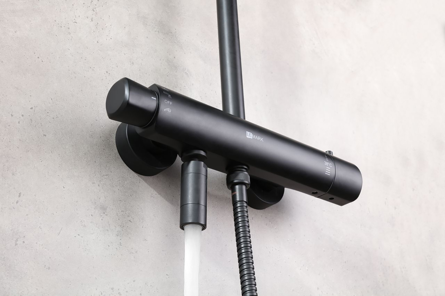Поворотный излив с аэратором Neoperl® Perlator®; Термостатический картридж Vernet® с гелевым термоэлементом и фиксатором; 3-позиционный картриджный переключатель (угол поворота - 180⁰); Аксессуары в комплекте (верхняя поворотная душевая лейка «Тропический дождь» Ø226 мм, 3-функциональная лейка Ø110x243 мм, регулируемое по высоте крепление для лейки, душевой шланг 1,5 м); Присоединительная группа для настенного крепления ½”; Металлическая рукоятка; |