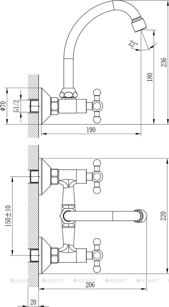 Высота излива см./мм.