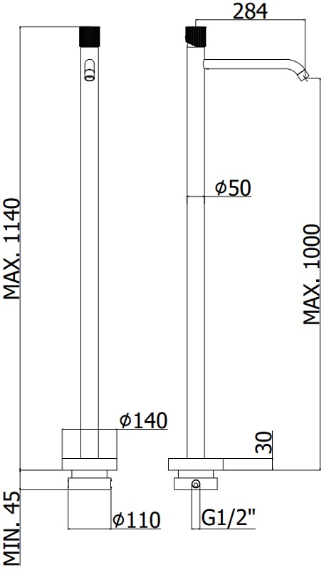 Длина излива см./мм.