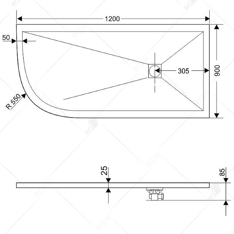 Дополнительно к поддону приобретается сифон RGW S-010
