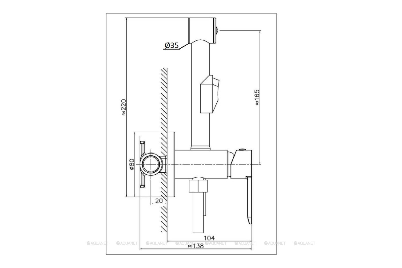 Скрытая монтажная часть, Душевой шланг, Держатель для гигиенического душа |