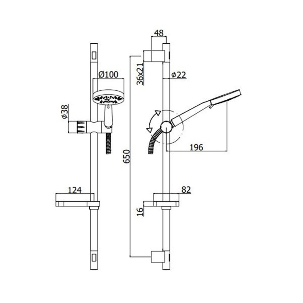 | Смеситель, Душевая лейка, Держатель для душа, Шланг для душа |