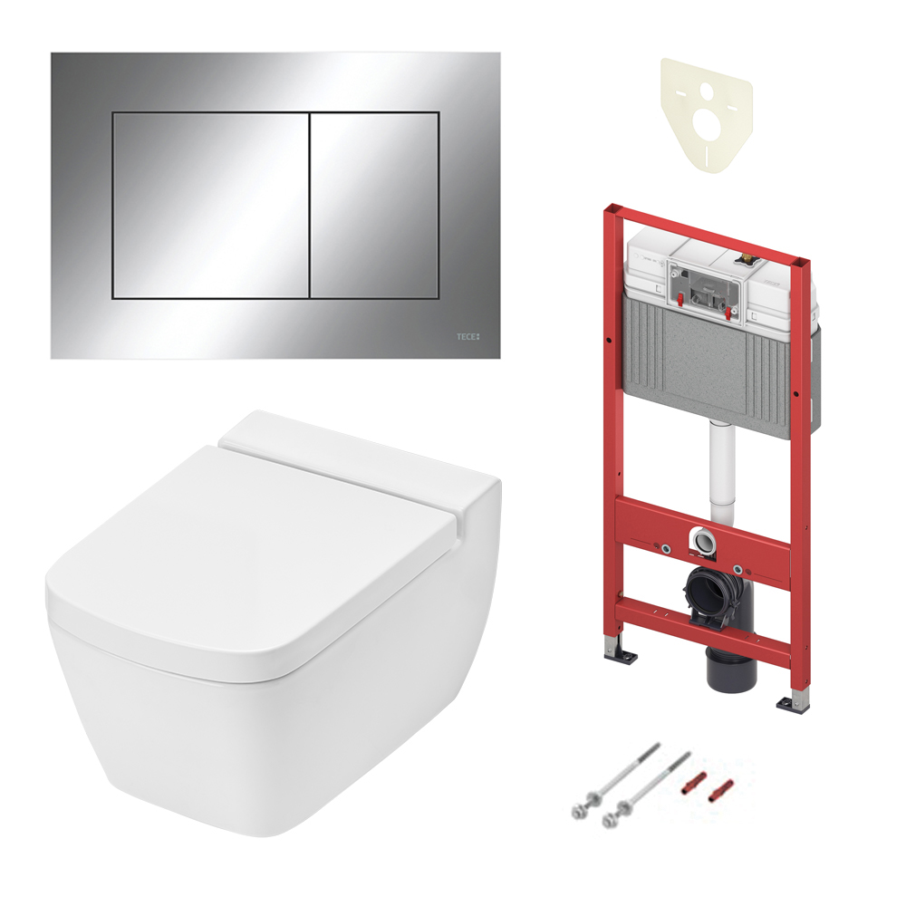 Рамная инсталляция с клавишей смыва ,Безободковый унитаз TECEone с крепежом, Крышка с микролифтом |