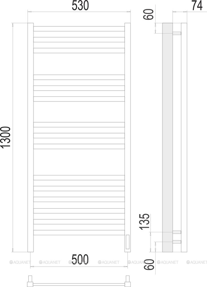 Полотенцесушитель - 1 шт.,Терморегулятор - 1 шт.,Комплект креплений - 1 шт.,Электрический кабель - 1 шт., |