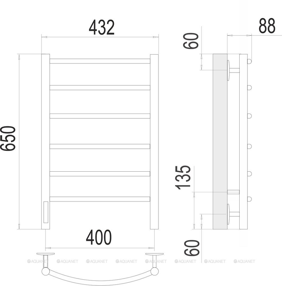 Полотенцесушитель - 1 шт.,Терморегулятор - 1 шт.,Комплект креплений - 1 шт.,Электрический кабель - 1 шт. |