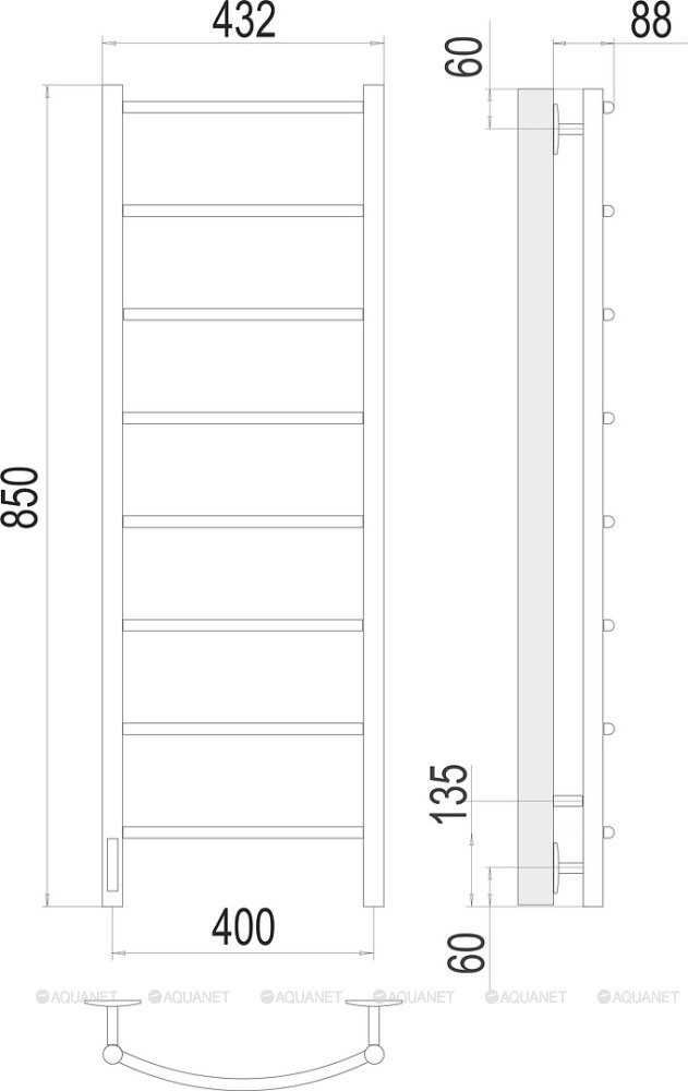 Полотенцесушитель - 1 шт.,Терморегулятор - 1 шт.,Комплект креплений - 1 шт.,Электрический кабель - 1 шт. |