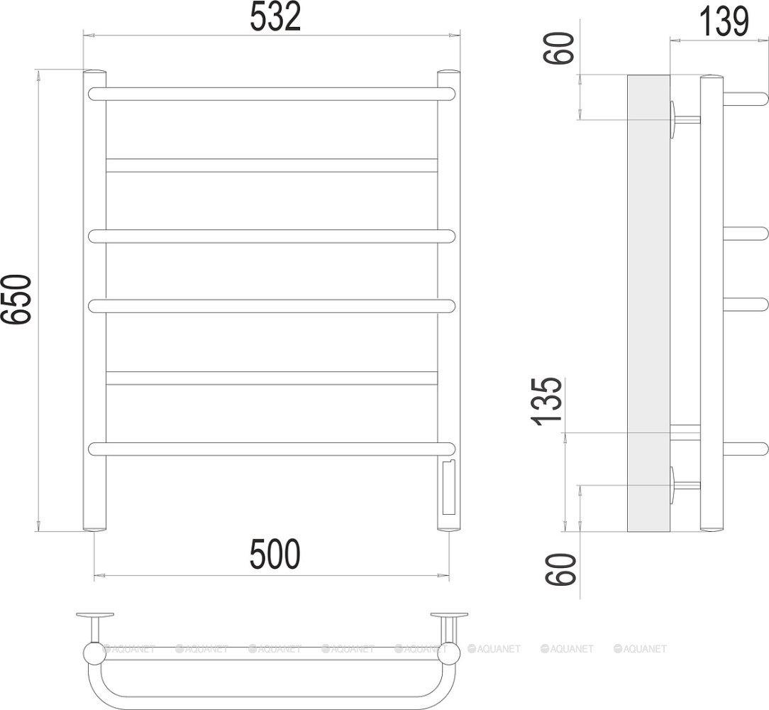 Полотенцесушитель - 1 шт.,Терморегулятор - 1 шт.,Комплект креплений - 1 шт.,Электрический кабель - 1 шт. |