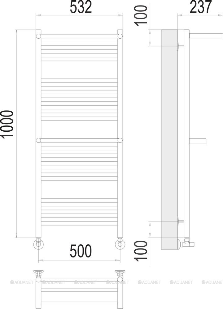 Полотенцесушитель - 1 шт.,Комплект креплений - 1 шт.,Комплект декоративных заглушек - 1 шт.,Кран Маевского - 1 шт.,Эксцентрик - 2 шт.,Отражатель - 2 шт.,Угловое соединение со сгоном - 2 шт., |